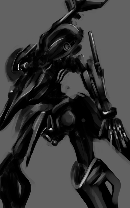 ようやく描き終わりました。わりとざっくりと描いてますが首周りやコアの内部など目が行くところを重点的に描き込んでいます。 背景なんてものはもとから存在していませんでした。仕方ないね