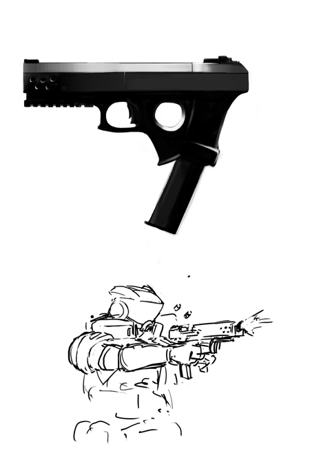 奇抜なデザインを目指しました。この弾奏の位置だと撃てませんね。あとグリップも小さいですし悪いところしかないようなものですけどたまにはこういうのもいいかなと